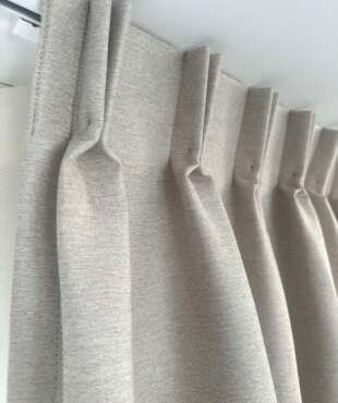 Les rideaux à plis flamands s’accrochent facilement sur une tringle à anneaux ou un rail, et leur structure cousue assure un maintien parfait sur le long terme.